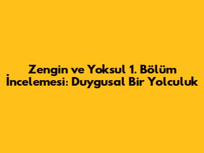 "Zengin ve Yoksul 1. Bölüm", dizinin genel atmosferini, karakterlerini ve temel çatışmalarını tanıtan önemli bir başlangıç bölümüdür. Bölümden çıkarılabilecek bazı önemli dersler ve analizler şunlardır: